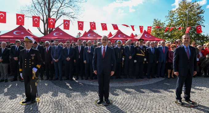 Çelenk sunma törenine; Vali Seddar Yavuz’un yanı sıra Deniz Eğitim - Öğretim ve Garnizon Komutanı Tuğamiral Bülent Turan, Deniz Hava Komutanı Tuğamiral Alper Yeniel, Kocaeli Büyükşehir Belediye Başkan V. Yaşar Çakmak, Kocaeli Cumhuriyet Başsavcısı Ferhat Kapıcı, Kocaeli Üniversitesi Rektörü Prof. Dr. Sadettin Hülagü, Kocaeli Sağlık ve Teknoloji Üniversitesi Rektörü Prof. Dr. Muzaffer Elmas , Vali Yardımcıları; İsmail Gültekin, Ali Ada, İzmit Kaymakamı Yusuf Ziya Çelikkaya, İl Emniyet Müdürü Veysal Tipioğlu, İl Jandarma Komutanı Albay Yavuz Selim Kapancı, Muharip Gaziler Derneği Kocaeli Şube Başkanı Nurettin Recep Sağlık, Türkiye Harp Malulü Gaziler, Şehit ve Yetimler Derneği Kocaeli Şube Başkanı ve şehit babası Şaban Arlı, daire müdürleri, siyasi parti temsilcileri, gaziler ile şehit ve gazi yakınları, öğretmenler, öğrenciler ve askeri erkan katıldı. Kocaeli Valiliği, Deniz Eğitim- Öğretim ve Garnizon Komutanlığı ve Büyükşehir Belediye Başkanlığının çelenk sunumunun ardından saygı duruşu ve İstiklal Marşı’nın okunması ile çelenk sunma töreni son buldu.