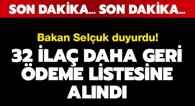 Aile, Çalışma ve Sosyal Hizmetler Bakanı Zehra Zümrüt Selçuk, Covid 19, Kanser ve Parkinson gibi birçok hastalığın tedavisinde kullanılmak üzere 32 ilacın daha geri ödeme listesine alındığını duyurdu.