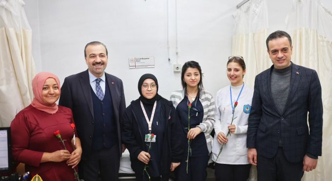Karamürsel de Belediye Başkan Adayı Mesut Çetinkaya ile Karamürsel Devlet Hastanesi’ni ziyaret ederek Başhekim Adnan Canveren ve sağlık çalışanlarının gününü kutlayan AK Parti İl Başkanı Şahin Talus, “Ülkemizin sağlık alanında yaşadığı büyük atılımlarda şüphesiz sağlık çalışanlarımızın büyük emekleri olmuştur. Üzerlerine düşen görevleri büyük özveri ile yapan sağlık çalışanlarımıza teşekkür ediyorum” dedi.