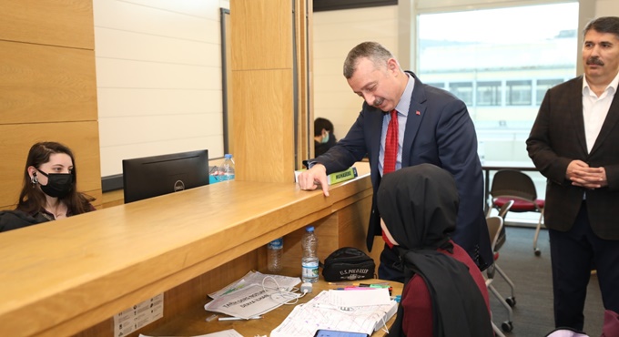 Aynı zamanda bir akademisyen olan Başkan Doç. Dr. Tahir Büyükakın, Büyükşehir Halk Kütüphanesi’nde rastladığı yüksek lisans ve doktora öğrencileriyle tek tek ilgilendi. Gençlere akademik alanlarıyla ilgili sorular soran Başkan Doç. Dr. Tahir Büyükakın, çeşitli kitap tavsiyelerinin yanı sıra çalışma metotları hakkında tavsiyelerde bulundu.