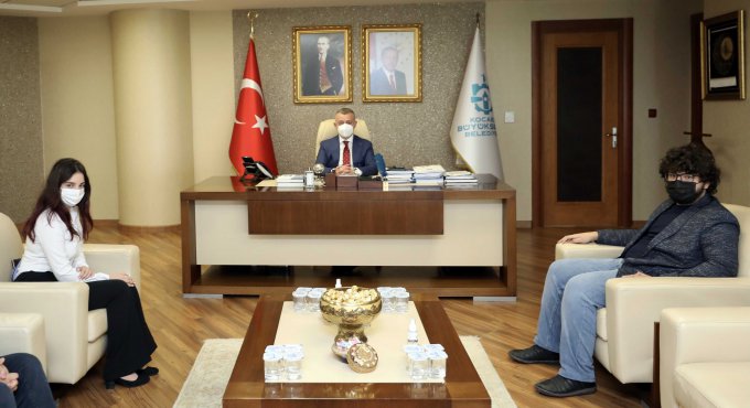 Marmara Belediyeler Birliği ve Kocaeli Büyükşehir Belediye Başkanı Doç. Dr. Tahir Büyükakın, ABD’de düzenlenen Uluslararası Bilim ve Mühendislik Fuarı olan REGENERON ISEF’te Dünya 4’üncüsü olarak ülkemiz ve kentimizi gururlandıran öğrenciler Kerem Bayhan ile Dilay Dal’ı makamında konuk etti. İl Milli Eğitim Müdürü Fehmi Rasim Çelik ve Büyükşehir Belediyesi Genel Sekreter Yardımcısı Sadık Uysal’ın da yer aldığı ziyarette, Mühendislik Mekaniği alanında Dünya 4’üncüsü olan İzmit Bilim ve Sanat Merkezi öğrencisi Kerem Bayhan ile Robotik ve Akıllı Makineler alanında Dünya 4’üncüsü olan Kocaeli Özel Enka Mesleki ve Teknik Anadolu Lisesi öğrencisi Dilay Dal ile büyük gurur duyduğunu ifade eden Başkan Büyükakın, “Yakalanan bu başarıda sizleri tebrik ediyorum. Sizi yetiştiren ve emek veren öğretmenlerinizle birlikte ailelerinizi de kutluyorum” dedi.