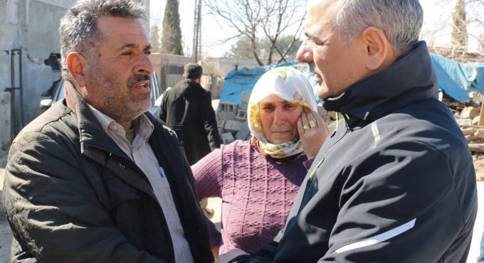 Kahramanmaraş merkezli deprem sonrasında bölgede görevlendirilen ve 12 gündür yaraların sarılması için çalışma yürüten Körfez Belediye Başkanı Şener Söğüt, yardım faaliyetlerini koordine ederken, vatandaşlarla da bir araya gelerek onları dinliyor. Başkan Söğüt son olarak depremde hasar gören köylerden biri olan Kahramanmaraş- Aslanbey Köyü’ndeydi.