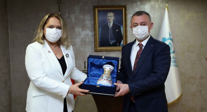 Marmara Belediyeler Birliği ve Kocaeli Büyükşehir Belediye Başkanı Doç. Dr Tahir Büyükakın, Kosova Cumhuriyeti İstanbul Başkonsolosu Suzan Novoberdaliu’yu makamında ağırladı. Nazik ziyaretlerinden dolayı Başkonsolos Novoberdaliu’ya teşekkür eden Başkan Büyükakın, Türkiye’nin, Kosova ve Balkanlarla tarihte güçlü bağlar kurulduğunu belirtti. Bu bağların bugünlere kadar geldiğini söyleyen Başkan Büyükakın, “Köken olarak baktığımızda çok yakın kültürleri yaşatan milletleriz. Tarih boyunca zor zamanlarda dayanışma içinde olduk. Geçmişte olduğu gibi Kovid-19 salgını döneminde de Türkiye, birçok ülkeye olduğu gibi Kosova Cumhuriyeti’nin de yanında oldu” dedi.