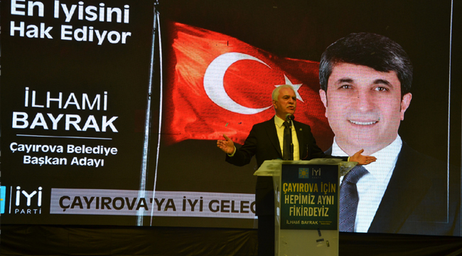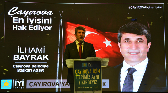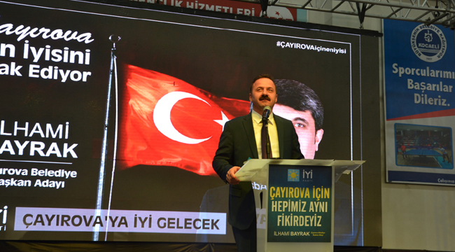 Adaylığını açıkladığından bu yana birçok farklı siyasi partilerden destek alan ve ‘Çayırova için hepimiz aynı fikirdeyiz’ sloganıyla yola devam eden İyi Parti Çayırova Belediyesi Başkan Adayı İlhami Bayrak, seçim beyannamesini duyurdu. Çayırova Kapalı Spor Salonu’nda gerçekleşen programa Bayrak’ın yanı sıra, İyi Parti Genel Başkan Yardımcısı Koray Aydın, İyi Parti Grup Başkanvekili Yavuz Ağıralioğlu, Kocaeli İl Başkanı Şanbaz Yıldız, Millet İttifakı Kocaeli Büyükşehir Belediyesi Başkan Adayı Dr. Serdar Kaman, İyi Parti Çayırova İlçe Başkanı Mehmet Şeref Uzunal, meclis üyesi adayları ve çok sayıda vatandaş katıldı. Bayrak’ın beyan ettiği projeler salondakilerden büyük alkış aldı. Bayrak seçilmeleri takdirinde Çayırova Belediyesi’nin mevcut binasını protokolle Sağlık Bakanlığı’na hastane yapılması için devredeceklerini açıkladı. Proje tanıtım programının açılış konuşmasını Mehmet Şeref Uzunal yaptı. Uzunal, “Adayımızı açıklarken, Çayırova’nın makus tarihinin değiştiği gün olarak açıklamıştık. Bugün Çayırova’ya İyi Parti’nin güneşinin doğacağının müjdelendiği gündür” dedi.