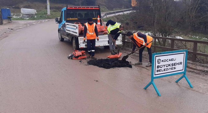 Kocaeli’nin tüm ilçelerinde ana arterler, cadde ve bulvarlarda yol ve kaldırımlarda oluşan çukur ve bozulmalar herhangi bir olumsuz durum oluşturarak araç ve yayalara zarar vermesin diye asfalt yama çalışması ile kaldırım parke yapım çalışmalarıyla onarılıyor. Trafiği de aksatmadan gerekli güvenlik önlemlerini alan Yol Bakım Timi, yama ve torba asfalt çalışması ile asfalttaki bozulmayı hızlı bir şekilde gidererek yolu kullanılabilir hale getiriyor.