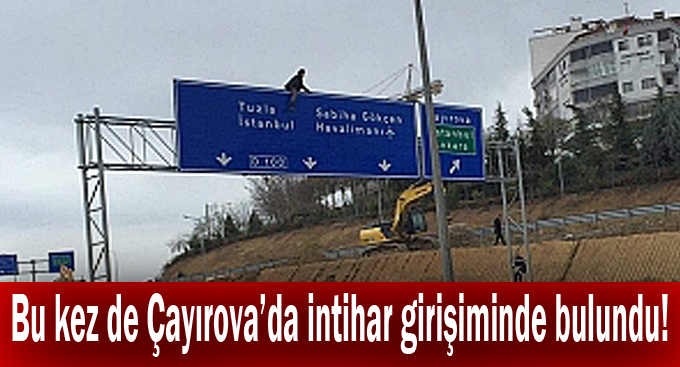 H.İ adlı vatandaş, Anıtpark'ta yaptığı intihar girişiminin ardından, durumu alışkanlık haline getirip, ilin çeşitli bölgelerinde yer alan trafik levhalarına çıkıyor. H.İ'nin bugünkü durağı ise Çayırova oldu. D-100 karayolu'nda McDonalds kavşağı'nın ilerisinde bulunan trafik levhasına tırmandı. H.İ'ye müdahale etmek isteyen ekipler olay yerine hemen giderken, yaşanan kargaşa trafiğin aksamasına sebep oldu.