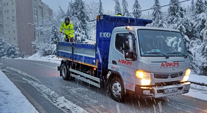 Kocaeli Büyükşehir Belediyesi’nin, kırsal bölgeler başta olmak üzere hizmetlerin daha etkin ve hızlı sağlanabilmesi amacıyla mahallelerde acil konularda hizmet vermek üzere kurulan “Büyükşehir Acil Tamir Takımı - A Takımı” ekipleri, vatandaşların kar yağışından olumsuz etkilenmemesi için çalışmalarını 24 saat boyunca sürdürüyor.