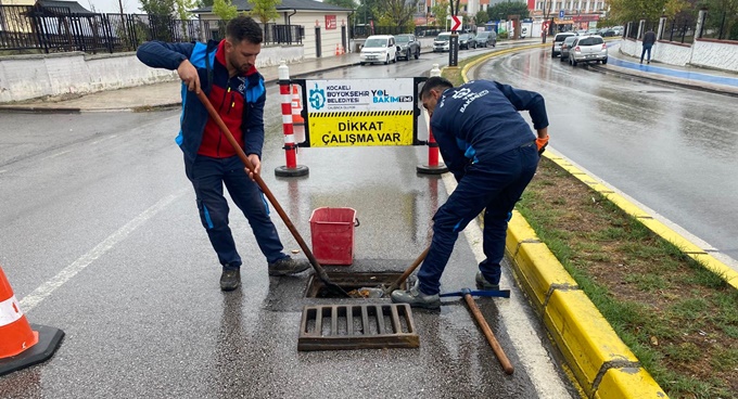 Kocaeli Büyükşehir Belediyesi’ne bağlı Yol Bakım Timi, A Takımı, Park ve Bahçeler Dairesi ile İSU ekiplerinin ortak çalışmalarıyla cadde ve sokaklardaki V kanalları, mazgal ve menfezlerde biriken atıklar temizleniyor. Çöp, yaprak, kuru dal, toprak gibi su geçişini engelleyen materyaller çıkarılarak tıkanıklıklar gideriliyor.