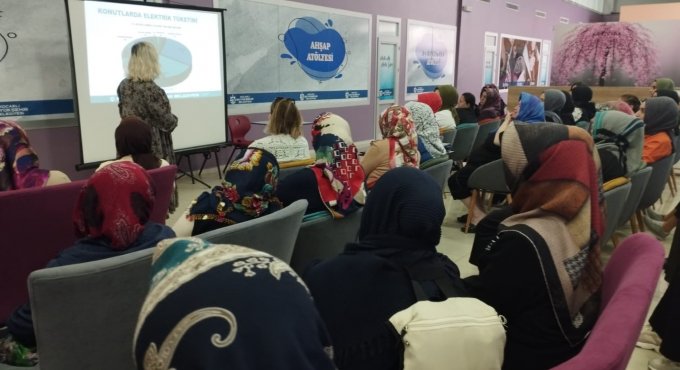 Büyükşehir Belediyesi Çevre Koruma ve İklim Değişikliği Şube Müdürlüğü’ne bağlı “Enerji Yöneticisi” sertifikalı personeller tarafından Anne Şehir katılımcılarına yönelik verilen eğitimlerde; Evlerimizde enerjinin verimli kullanılması ve tasarruf bilincinin arttırılması amacıyla; ısıtma ve aydınlatmada dikkat edilmesi gereken hususlar, beyaz eşya ve küçük ev aletleri alınırken ve kullanırken dikkat edilmesi gereken hususlar konularında bilgilendirme yapıldı. Ayrıca ısıtma, soğutma, aydınlatma vb. gibi günlük hayatımızın her alanında sürdüreceğimiz küçük dokunuşlarla enerji verimliliğini artırarak tasarruf sağlayabilir, aile bütçesine, ülkemizin ekonomisine ve en önemlisi yaşadığımız dünyanın korunmasına katkı sağlayabileceğimiz belirtildi.