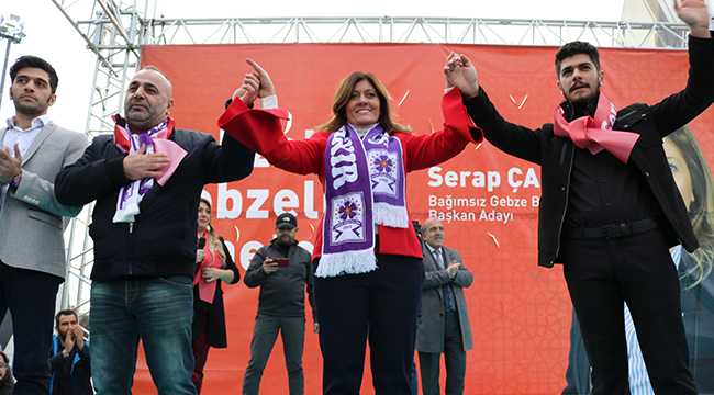 Gebze kamuoyunun yakından tanıdığı ve birçok sosyal sorumluluk projesinin yanı sıra başarılı girişimcilik örnekleri sergileyen Serap Çakır resmen sahaya indi. Kent meydanında gerçekleşen programa çok sayıda STK temsilcisi ve Gebze'nin her mahallesinden binlerce vatandaş katıldı. Bağımsız Gebze Belediyesi Başkan Adayı Serap Çakır konuşmasında Gebze'nin ülkeye yaptığı katkının önemine dikkat çekerken, Gebze'de var olan sorunları çözeceğini, Gebze'yi Türkiye'nin en seçkin ilçesi haline getireceklerinin altını çizdi. Şeffaf bir belediyecilik anlayışıyla hareket edeceğini de vurgulayan Çakır, Gebze'nin avantajlarından faydalanarak başarılı çalışmalara imza atacaklarını da belirtti. Adaylık sürecine de değinen Çakır, "Aday olmam konusunda çok fazla kamuoyu baskısı vardı. Düşündüm ve bu isteğe kayıtsız kalmayarak bağımsız aday olarak başvurma kanaati getirdim. Resmi başvurumu yaptım ve Bağımsız Gebze Belediyesi Başkan Adayı olarak karşınıza çıktım" dedi. İşte Çakır'ın açıklamaları şu şekilde;