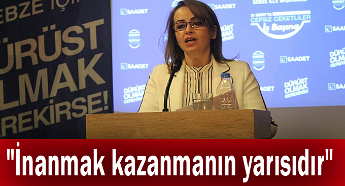 Saadet Partisi Gebze Belediye Başkan Adayı Burcu Çetinkaya yaptığı konuşmada, "Bugün burada bitti denilen bir başlangıcın bitmediğini ilan etmek için buluştuk. Bundan iki ay önce hayallerimiz var diyerek bir yola çıkmıştık. Ben hayallerimin peşinden gitmeye kararlıyım. Gebze için, halk için, Hakka hizmet için, yarım kalan hayallerim için bu yarışta bana imkân veren Saadet Partisi ile birlikte yola kaldığım yerden devam etmek istiyorum. Kendilerine bu imkân için teşekkür ediyorum. Artık Gebze için dürüst belediyecilik dönemi başlıyor. Bu dönemin öncüleri Milli Görüş hareketinin dürüst kadroları mimarları ise bütün Gebze olacaktır. Ortaya koyacağımız projelerle Gebze’mize hak etmiş olduğu değeri kazandırıp yaşanabilir bir ilçe haline getirmek amacındayız ”dedi.
