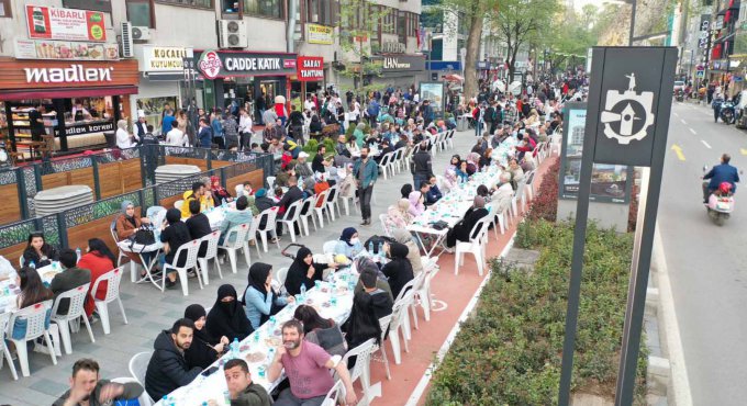 Kocaeli Büyükşehir Belediyesi, yeni baştan yaptığı Cumhuriyet Bulvarı’nda ilk etkinliğini gerçekleştirdi. Çift taraflı dizilen masalarla Cumhuriyet Bulvarı’nda bir araya gelen 11 bin kent sakini iftarlarını adeta bir şenlik havası içerisinde açtı. İftar programından en çok memnun kalanlar ise hiç şüphesiz çocuklar oldu. Animasyon ekibi, Hacivat Karagöz oyunu, balon şişirme gibi etkinliklerle doyasıya eğlenen çocuklar Horoz Şekeri, Osmanlı Macunu ve Osmanlı Şerbeti’nin de tadına baktı.