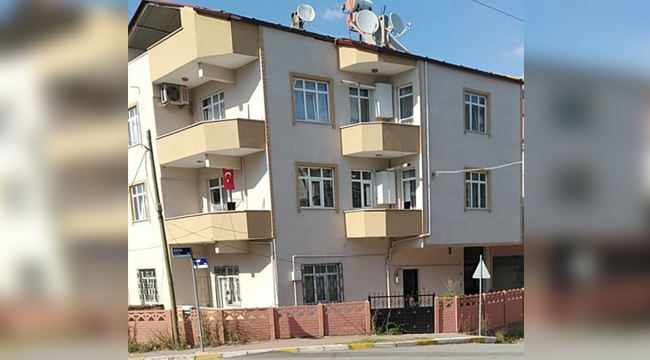 Piyade Er Yasin Kumuz'un Darıca'daki evine Türk Bayrağı asıldı.