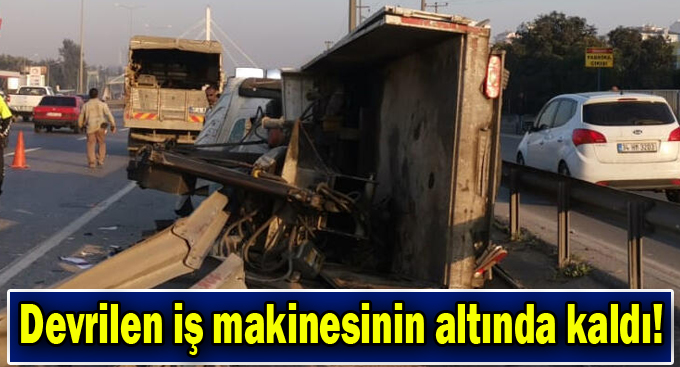 Devrilen iş makinesinin altında kaldı!