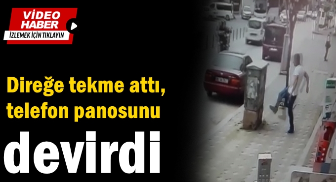 Sultan Orhan Mahallesi İlyasbey Caddesi’nde yürüyen kişi, bir anda koşarak kaldırımdaki aydınlatma direğine tekme attı. Aynı kişi birkaç metre sonra da yine tekme atarak telefon panosunu devirdi. O anlar, bölgedeki bir iş yerinin güvenlik kamerasına yansıdı.