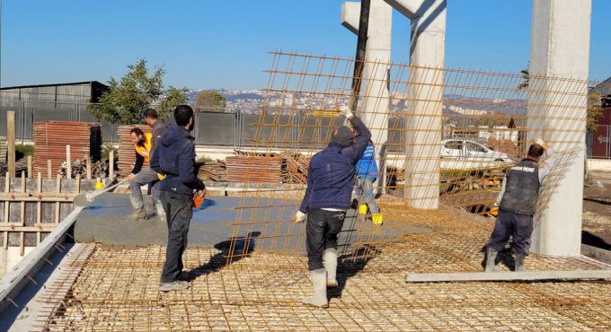 Proje çalışması dahilinde ana tesis binasının H-G ile 1-14 akslarının zemin beton dökümüne başlanırken F aksında beton dökümü tamamlandı. İdari binada iç duvar alçı sıva işleri devam ederken Yapı Kontrol Dairesi Başkanlığı ekipleri, ön kurutma binasının çatı kaplama işlerine başladı. Ayrıca kazan dairesi temel donatı imalatı da devam ediyor.