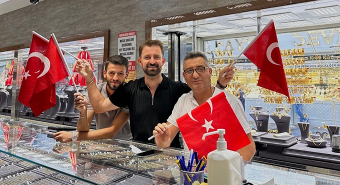 Büyükşehir ekipleri, 15 Temmuz’un manevi atmosferini kent genelinde yaşatmak için İzmit, Gebze ve Körfez ilçelerinde esnafa ve vatandaşa Türk bayrağı dağıttı. Caddeler, iş yerleri ve meydanlar kırmızı beyazla donatıldı.