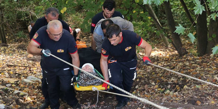 İhbar üzerine olay yerine sağlık ve itfaiye ekipleri sevk edildi. 30 metrelik uçuruma yuvarlanan Mihriye Baştürk’ün yanına itfaiye aracına bağladıkları halatlarla inen ekipler, yaşlı kadını kayalıkların arasında yaralı bir şekilde yatarken buldu. Hemen kurtarma çalışması başlatan ekipler, sedyeye aldıkları yaşlı kadını sabitledikten sonra sedyeyi halatlara bağlayarak vatandaşların da yardımıyla uçurumdan çıkardı. Yaklaşık 1 saat süren kurtarma çalışması sonrası yaralı kadın sağlık ekiplerine teslim edildi.