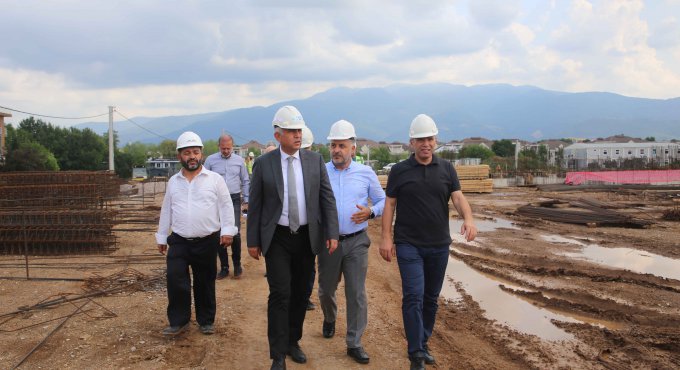 Kocaeli Büyükşehir Belediyesi’nin Kocaeli’de ikamet eden sağlık çalışanları için Kartepe ilçesinde projelendirdiği Sağlık Kent Konutları inşası tüm hızıyla sürüyor. Bu kapsamda Kocaeli Büyükşehir Belediyesi Genel Sekreteri Balamir Gündoğdu, yapımı devam eden projenin geldiği noktayı bizzat yerinde inceledi. Kent Konut Genel Müdürü Erhan Coşan ve teknik personelin de yer aldığı incelemede Genel Sekreter Gündoğdu, projeyle ilgili yetkililerden detaylı bilgi aldı.