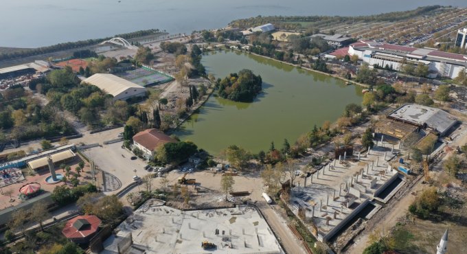 Eski ve kullanışsız yapıların kaldırıldığı alanda vatandaşların kullanımı için yenilerinin yapımı devam ediyor. Bu kapsamda kafeler bölgesinde çelik montaj ve iç duvar imalatları tamamlandı. Düğün salonları bölgesinde A blok tabliye birinci kısım betonları atılırken ikinci kısım için hazırlık yapılıyor. B blokta perde kalıp imalatları tamamlanırken C ve D bloklarda kolon perde donatı imalatları devam ediyor. Diğer yandan içme suyu, kanalizasyon ve yağmur suyu için alt yapı çalışmaları da sürüyor.