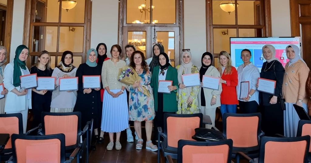 KADEM Kocaeli Temsilciliği, kadınlar tarafından yönetilen küçük ve orta ölçekli işletmelere finansman ve danışmanlık desteği amacıyla ihtiyaçları olan becerileri, bilgileri ve kaynakları elde etmelerine yönelik olarak ‘’Kadın İşletmelerine Finansman ve Danışmanlık Desteği Programı / İşletme Merceği’’ semineri düzenledi. 4 Temmuz Pazartesi günü düzenlenen semineri, Frankfurt School of Finance & Management Kıdemli Kadın Girişimciliği Uzmanı Belgin Güzaltan gerçekleştirdi. Seminerde Avrupa İmar ve Kalkınma Bankası (EBRD) tarafından, kadınların iş dünyasına katılımını teşvik etmek, gelişmek ve büyümek için ihtiyaç duydukları finansmana ulaşmalarına yardımcı olmak amacıyla uygulanan “Kadın İşletmelerine Finansman ve Danışmanlık Desteği Programı’’ anlatıldı. Program bünyesinde kadınların işletmelerini daha yakından izlemelerine ve analiz etmelerine, güçlü yanlarını keşfedip, geliştirmelerine ve finansman sağlamalarına yardımcı olmak amacıyla ‘İşletme Merceği’ uygulaması yapıldı. Seminere Kocaeli’de faaliyet gösteren 30 işletmeci kadın katılım sağladı. Toplantı sonrasında KADEM Kocaeli Temsilcisi Asuman Sert Erturan aktarımları için Belgin Güzaltan’a teşekkürlerini ileterek çiçek takdiminde bulundu. Seminer Asuman Sert Erturan ve Belgin Güzaltan’ın katılımcılara katılım belgelerini takdim etmeleriyle sona erdi.