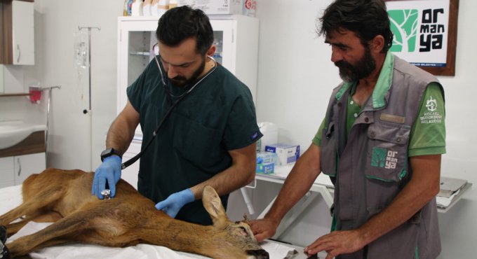 Ormanya Doğal Yaşam Parkı Yaban Hayatı Kurtarma ve Rehabilitasyon Merkezi’nde veteriner hekim tarafından ilk müdahalesi yapılan karaca gözlem altına alındı. Sağlık durumu iyiye giden Karaca, tedavisinin ardından doğal yaşam ortamına bırakılacak.
