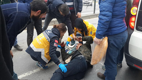 Gölcük'te kırmızı ışıkta duran araçtan inen Fatih S.'ye arkadan gelenotomobil çarptı. Yaralanan Fatih S. tedavi altına alındı.
