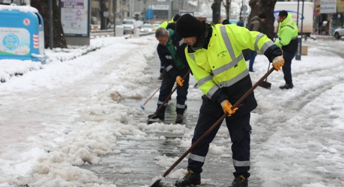 Büyükşehir, araç trafiğinin yanında yaya ulaşımının sağlanması için de çalışmalarını sürdürüyor. Bu kapsamda özellikle yaya üst geçitlerinde olası buzlanmaya karşı ekipler özel solüsyonlarla yıkıyor. Yaya üst geçitleri, durak önleri ve yaya kaldırımlarında aralıksız çalışma yapan ekipler, tüm bu alanların açık ve yayalar için güvenli kalmasını sağlıyor. Ekipler, yayaların hava şartlarından olumsuz etkilenmemesi için geceden başladıkları çalışmalarına sabahın erken saatlerinde ve gündüz de devam ediyor.