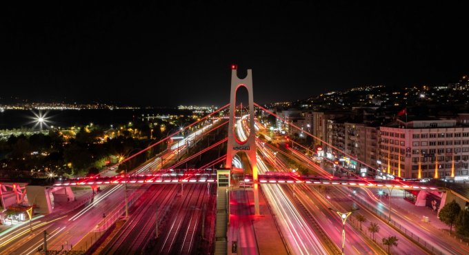 Vatan sevgisinin simgesi olan Türk bayrağından ilham alınarak gerçekleştirilen ışıklandırma çalışması, Kocaeli’ye hem estetik bir dokunuş kattı hem de duygu yüklü bir atmosfer oluşturdu. Gece boyunca şehrin kalbinde parlayan kırmızı ve beyaz ışıklar, gökyüzünü adeta bir bayrak gibi süsledi.
