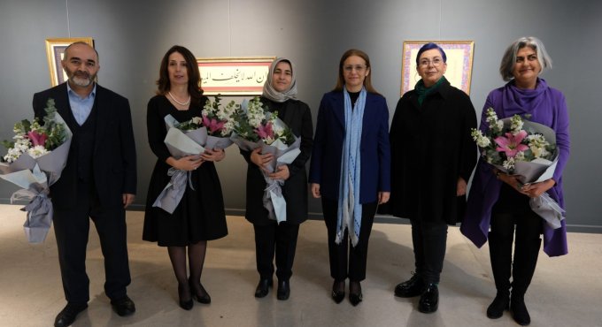 Konuşmaların ardından Başkan Vekil Berna Abiş, Günseli Kato ile sergide emeği olan Büyükşehir Belediye Konservatuvarı Geleneksel Sanatlar Bölümü içerisinde bulunan; Çini, Ebru, Hat, Kat-ı, Minyatür, Tezhip alanlarındaki eğitmenler; Doç. Dr. Abbase Sultan Karaoğlu, Gülseher Kahraman, Mahmut Şahin, Özlem Ergün ve Abdullah Aydemir’e çiçek takdim etti. Sergiyi Günseli Kato ile gezen Başkan Vekili Berna Abiş’e eğitmenler tarafından eserlerle ilgili bilgi aktarıldı.