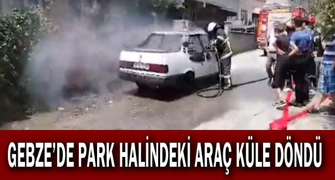 Gebze’de meydana gelen olayda park halinde olan bir araç alev alarak yandı.