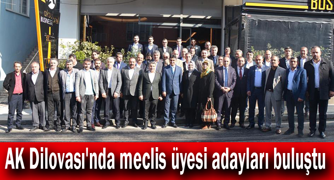 AK Parti Dilovası İlçe Teşkilatı tarafından organize edilen toplantı Aksu Otel'de gerçekleşti. Toplantıya İl Yöneticisi Fazıl Korkmaz, İlçe Başkanı Osman Akbulut, AK Parti Dilovası Belediye Başkan adayı Hamza Şayir, SKM Başkanı Yavuz Celep, Kadın Kolları Başkanı Gülay Artut, Gençlik Kolları Başkanı Emre Sarıca, belediye başkan aday adayları ve meclis üyeleri ve meclis üyesi adayları ve aday adayları katıldı.