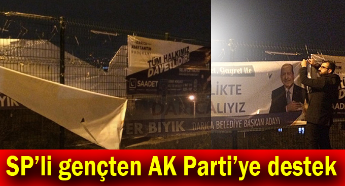 Yerel seçim çalışmaları kapsamında her partinin gençlik kolları üyeleri gecelerini gündüzlerine katarak çalışmalarını sürdürüyorlar. Bununla birlikte dün gece Saadet Partisi Darıca Gençlik Kolları mensupları, partilerinin belediye başkan adayı Selim Çetinkaya'nın zarar gören afişlerini düzeltirken örnek bir davranışa imza attı. SP'li gençler Cumhur İttifakı Darıca Belediyesi Başkan Adayı Muzaffer Bıyık'ın da afişlerini de tamir ederek, seçim geçici kardeşlik kalıcı mesajı verdiler.