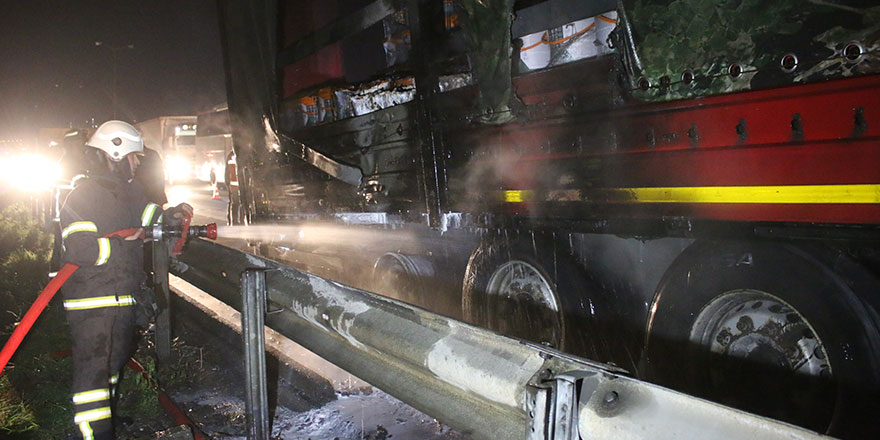 Durumun bildirilmesi üzerine olay yerine itfaiye ve polis ekipleri sevk edildi. İtfaiye ekiplerinin müdahalesiyle yangın büyümeden söndürülürken, tırda hasar meydana geldi.