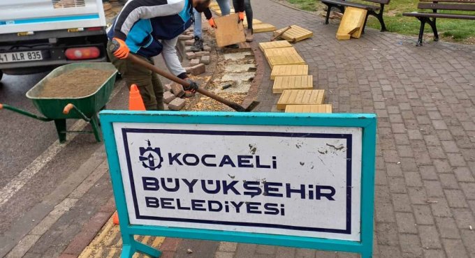 Büyükşehir Yol Bakım Timi, Kocaeli Üniversitesi otobüs durağına ulaşımın sağlandığı kaldırımda bulunan deforme olmuş engelli yolunun onarımını yaptı